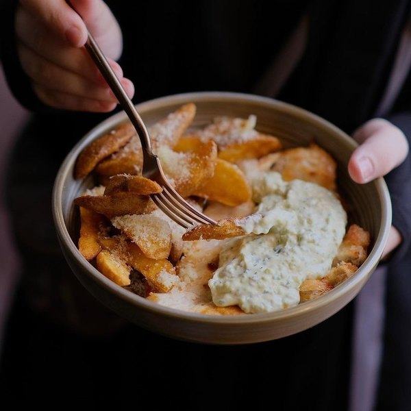 Проект стал точкой притяжения для местной креативной молодежи. Зимой можно устроиться внутри в одной из комнат аутентичного помещения, а летом весь двор оживает и заполняется гостями. За современное направление кухни отвечает молодой бренд-шеф — Олег Гаевский — с опытом работы в европейских ресторанах со звездой Michelin. Меню небольшое, блюда знакомые и понятные, с авторским акцентом.