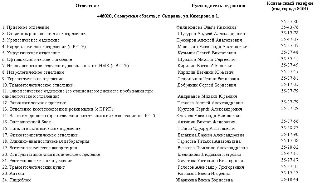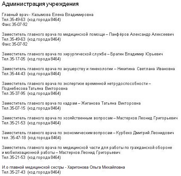 ГБУЗ СО «Сызранская центральная городская больница» — Администрация ЦГБ: