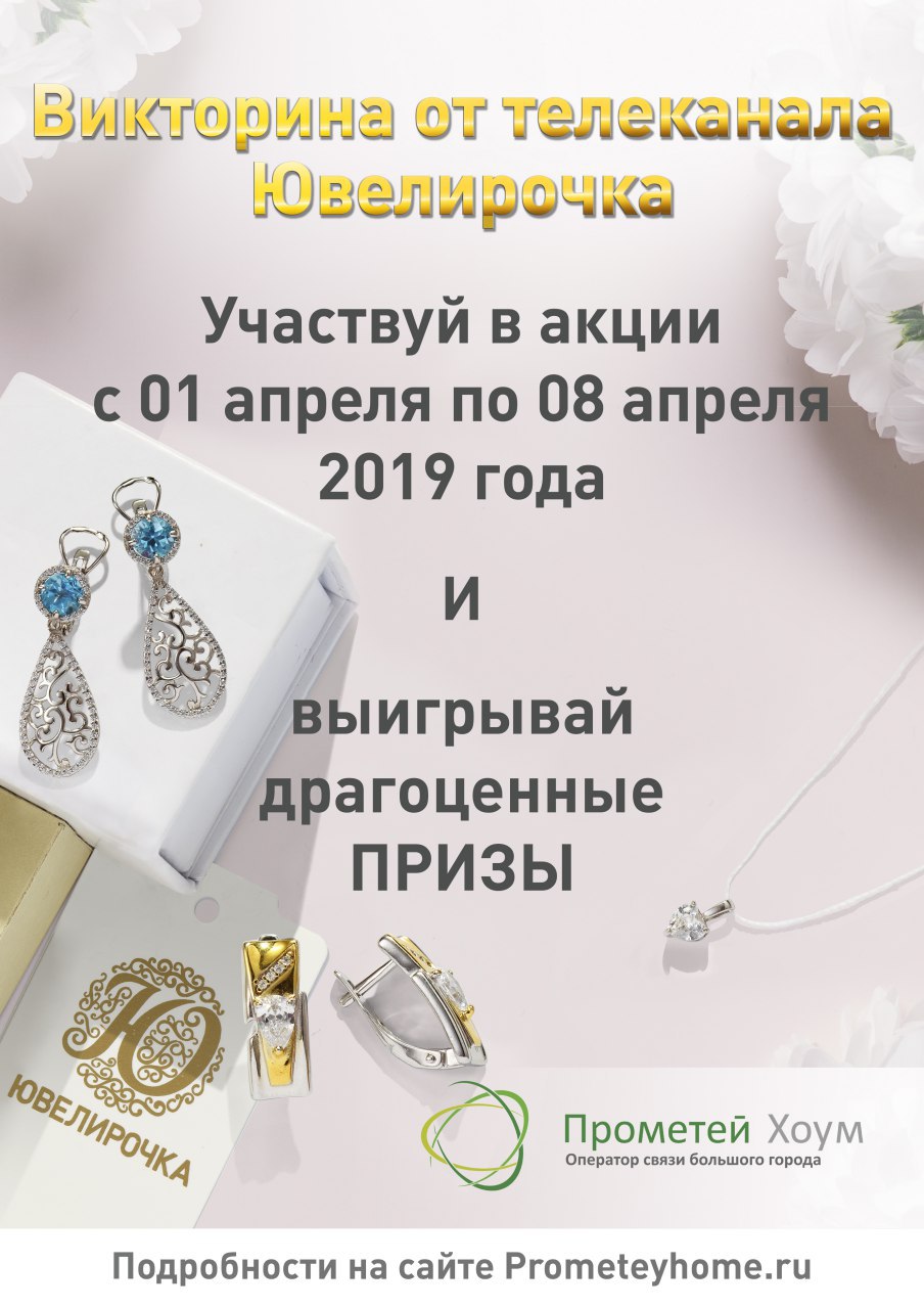 ❗Второй этап розыгрыша ювелирных украшений от телеканала Ювелирочка и интернет-провайдера Прометей❗
