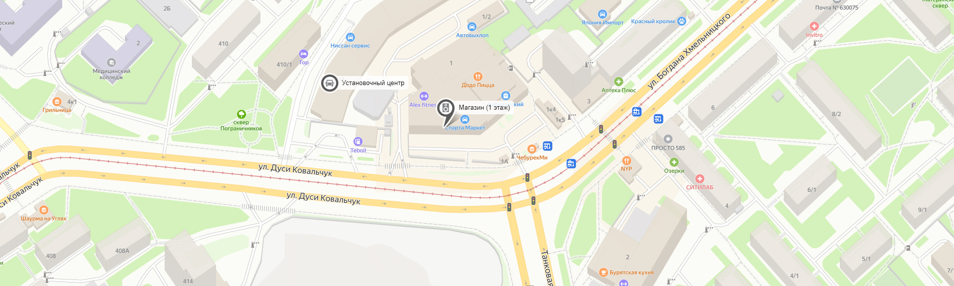 Магазин: ТЦ «Автомолл» Богдана Хмельницкого, 1/1; 1 этаж тел. +7 (383) 383‒23‒03 Установочный центр: Богдана Хмельницкого, 3а тел. +7 (383) 383‒57‒07 |
